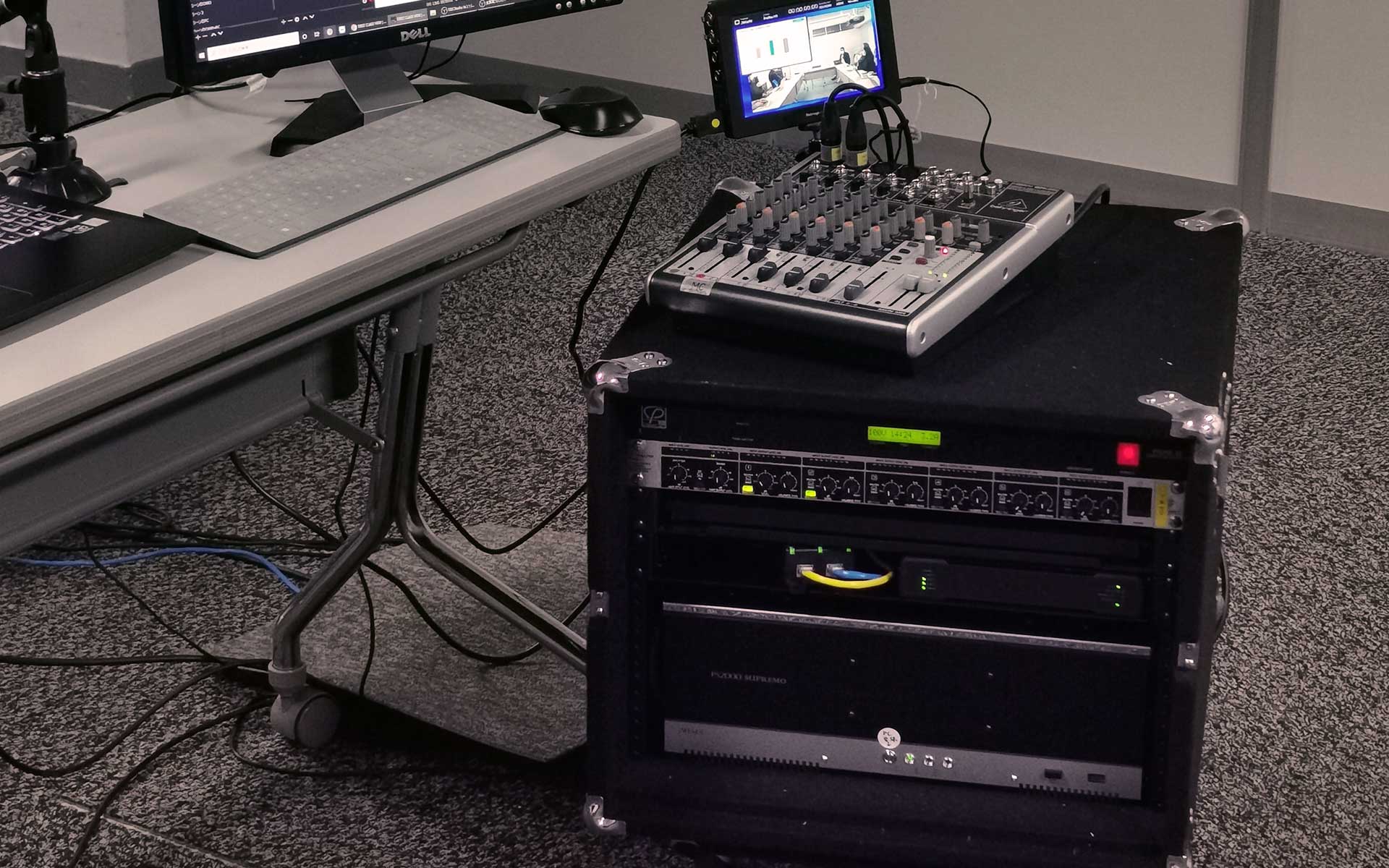 会場のパネラーの音声とオンライン上のパネラーの音声を直に聴きながらディスカッションに集中する環境を実現するオリジナルの配信システムのレンタルも実施しています